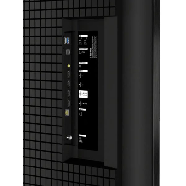 تلویزیون 98 اینچ سونی BRAVIA 5، همچون نسلهای قبلی خود، از زبان طراحی یکپارچه و شکیل One Slate بهره میبرد؛ مفهومی که به ادغام بیوقفه قاب و صفحه نمایش اشاره دارد. این طراحی مینیمال، ظاهری یکدست و بدون قطعات اضافی ایجاد میکند که به راحتی در هر فضای مدرن و شیک، جلوهای خاص و حرفهای به محیط میبخشد. بدنه این دستگاه به رنگ مشکی مات طراحی شده و از پلاستیک فشرده و تخصصی SORPLAS ساخته شده است؛ مادهای که توسط سونی توسعه یافته و همزمان با وزن سبک، مقاومت بسیار بالا و قابلیت بازیافت کامل را به همراه دارد. بخش پشتی تلویزیون سونی مینی ال ای دی ایکس آر 50 با طراحی مشبک منحصر به فردی آراسته شده که امضای خاص محصولات سونی محسوب میشود. سونی توجه ویژهای به قابلیت دسترسی افراد نابینا و کمبینا در طراحی تلویزیون XR50 سونی سال 2025 داشته است. روی پورتهای خروجی صوتی تلویزیون از جمله پورت HDMI با قابلیت بازگشت کانال صوتی (HDMI Audio Return Channel – HDMI ARC) و پورت S-Center Speaker، نقاط برجستهای به نام Tactile Dots تعبیه شده است. این برجستگیهای لمسی به کاربران کمبینا امکان میدهد تنها با لمس پورتها، نوع هر کدام را به سادگی تشخیص دهند. این قابلیت مخصوصاً هنگام نصب تلویزیون روی دیوار و اتصال به ساندبار یا سیستم صوتی خانگی، نقش کاربردی و مهمی ایفا میکند و فرآیند نصب و راهاندازی را برای همه افراد راحتتر میسازد.